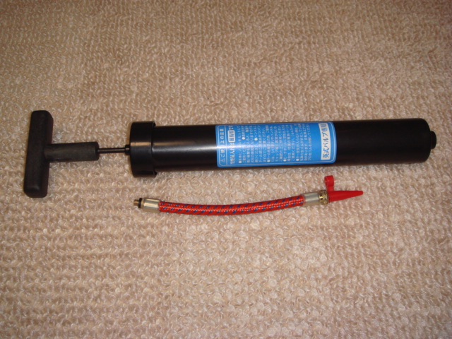 (2)ポンプで、全体が膨らむよう空気を入れていく